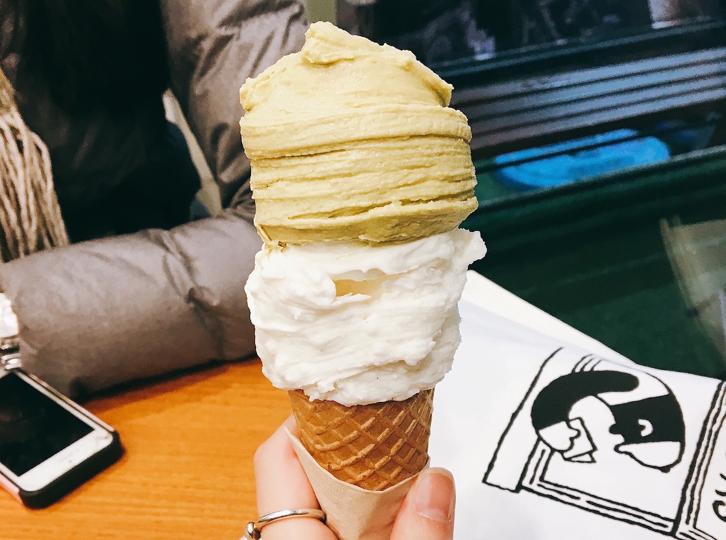 Hongdae was my favourite area of Seoul. There were so many things to see, a lot of shops and so many kind of places to get food. My friend took me to her favourite gelato shop Gelati Gelati who are famous for their rice gelato. I had never tried rice gelato before Gelati Gelati, it was subtly sweet with a distinct creamy rice flavour with bits of rice in it and now I sometimes crave it late at night. I matched my rice gelato with my ultimate go-to flavour pistachio. We ate our dessert while it was 7 degrees or so outside, gelato or ice-cream always tastes better when the weather is cold.